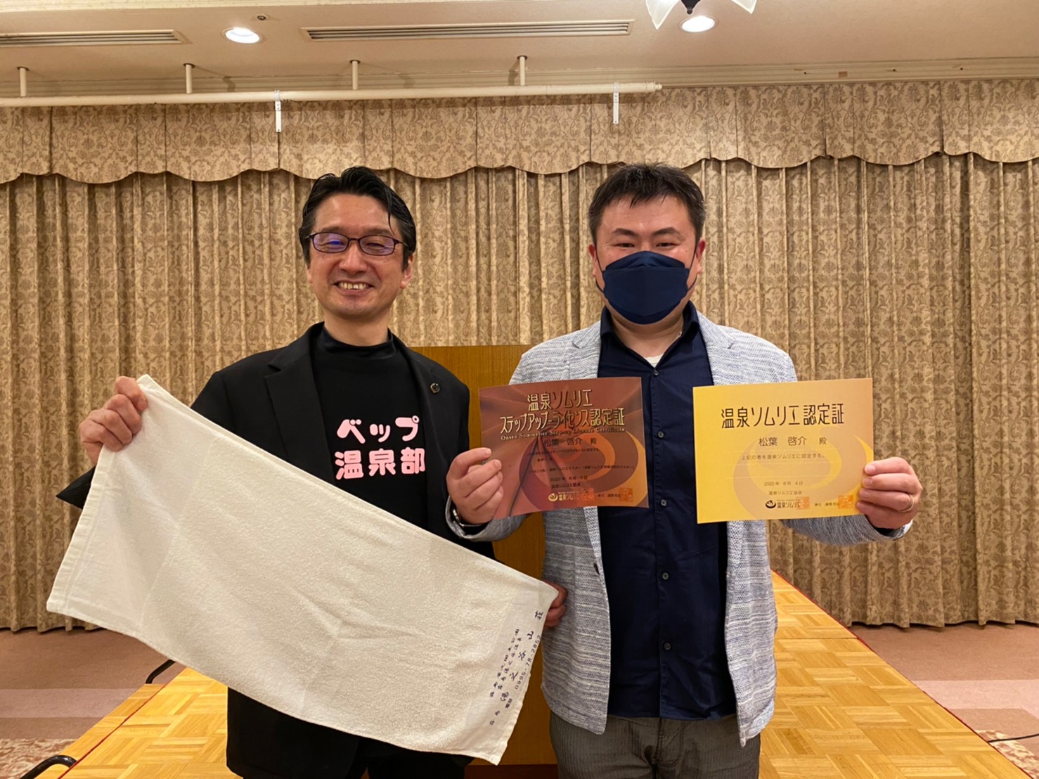 このたび、弊社代表の松葉が以前取得していた『温泉観光実践士』の資格に加え、大分県別府市で開催された温泉ソムリエ認定セミナーにて、『温泉ソムリエ』および『温泉ソムリエマスター』の資格を取得いたしました。